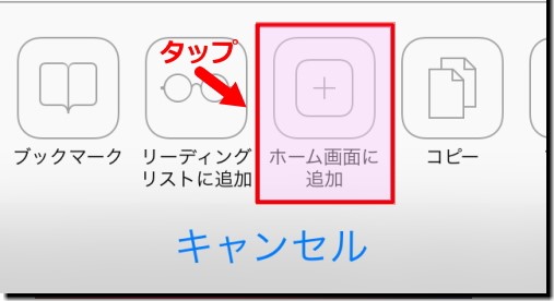 開いたパネルから、「ホーム画面に追加」を選択。